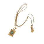 Collier en laiton bain d’or et émail. Bélière pivotante. Une face message, une face symbole.