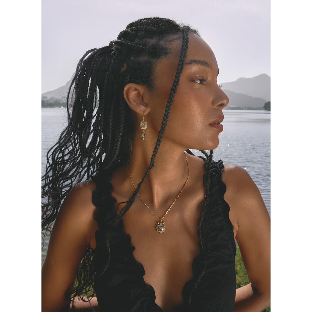 Collier en laiton bain d’or, 1 micron d’or 999/1000, et pierres semi-précieuses.
