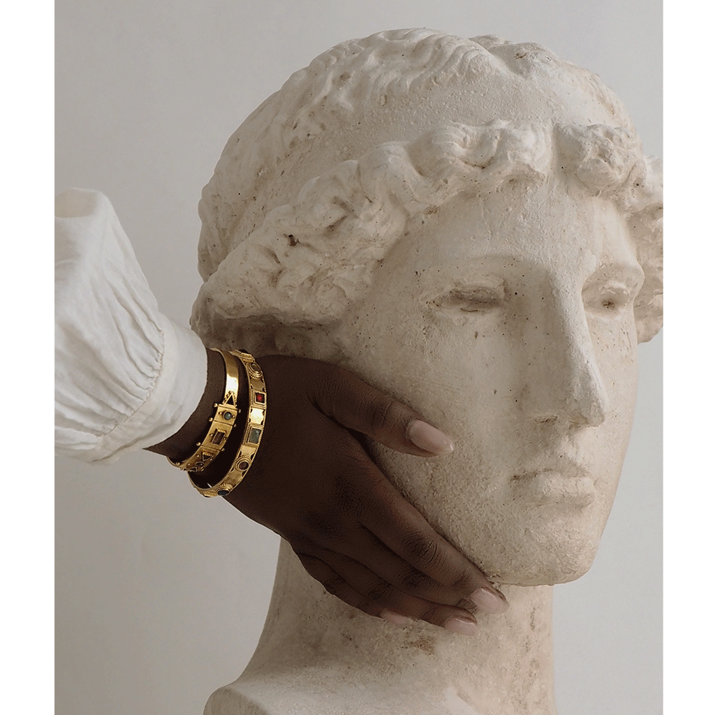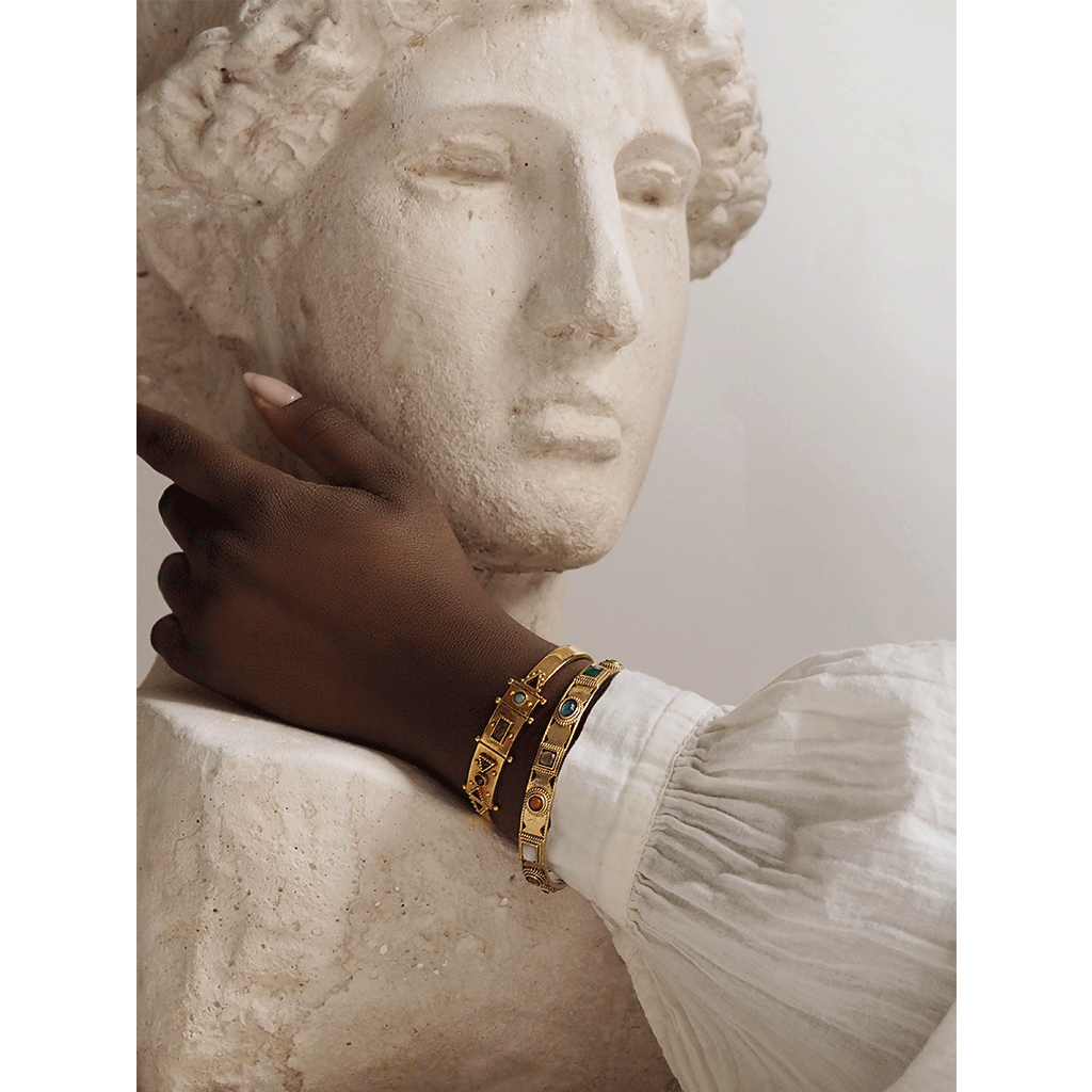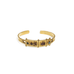 Gold-plated brass cuff bracelet, 1 micron of 999/1000 gold, and semi-precious stones.
