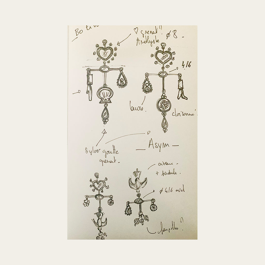 Her jewelry is handmade in the Parisian workshop (27 rue Marguerite de Rochechouart), guaranteeing artisanal know-how.