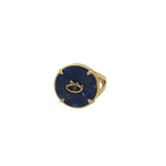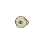 Gold-plated brass ring (3 microns, 999/1000) with a semi-precious stone. Enamelled central eye. Available in blue opaline, mother-of-pearl, red jasper, lapis lazuli, and labradorite.