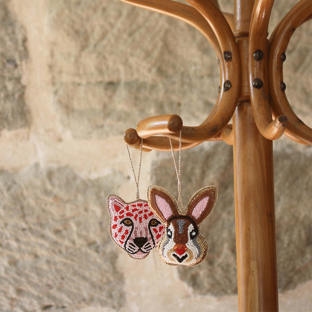 Nos collections s’inspirent de thèmes variés : des animaux sauvages majestueux aux ex-voto symboliques, chaque création raconte une histoire et donne une touche de fantaisie. Elles sont comme un talisman à accrocher.