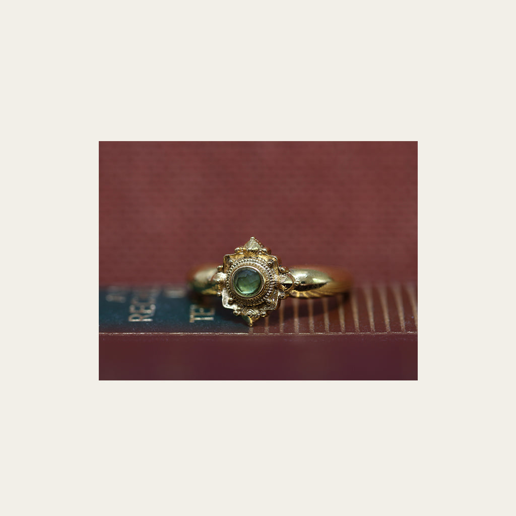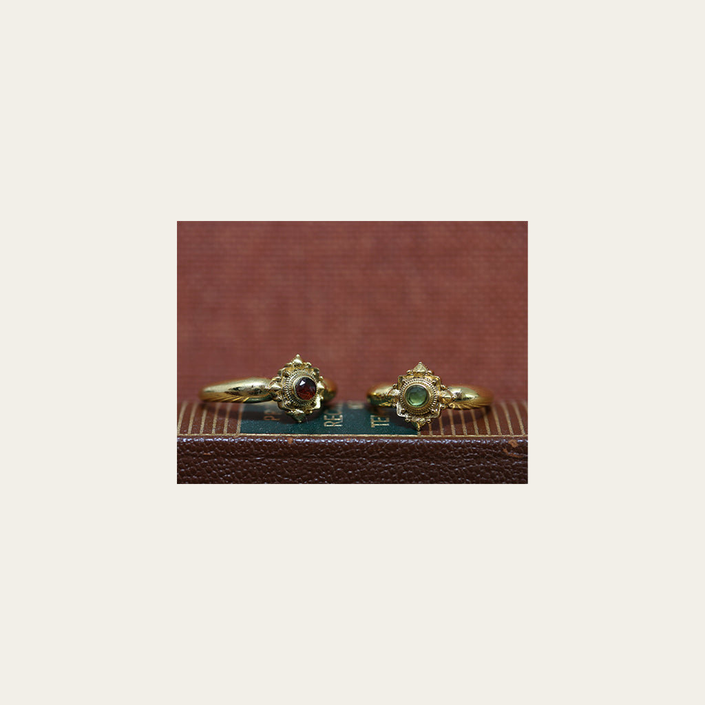 Bague en laiton plaquée or 3 microns d’or 999/1000 et pierre semi précieuse.