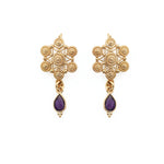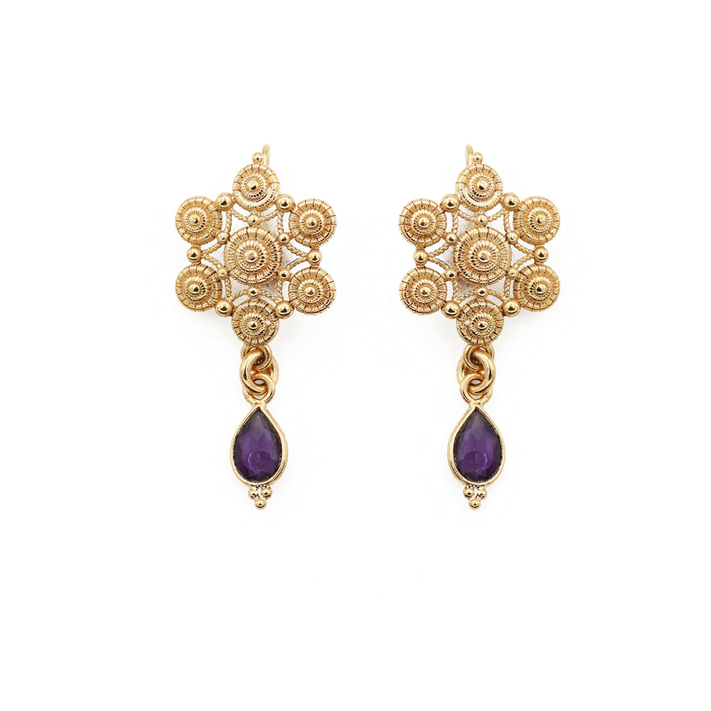 Boucles d’oreilles en laiton bain d’or et pierres semi précieuses sertis en argent massif.