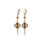 Boucles d'oreilles en laiton bain d’or et pierres semi-précieuses. Disponible en Péridot et Grenat. Dimensions : 5 cm / 1,5 cm.